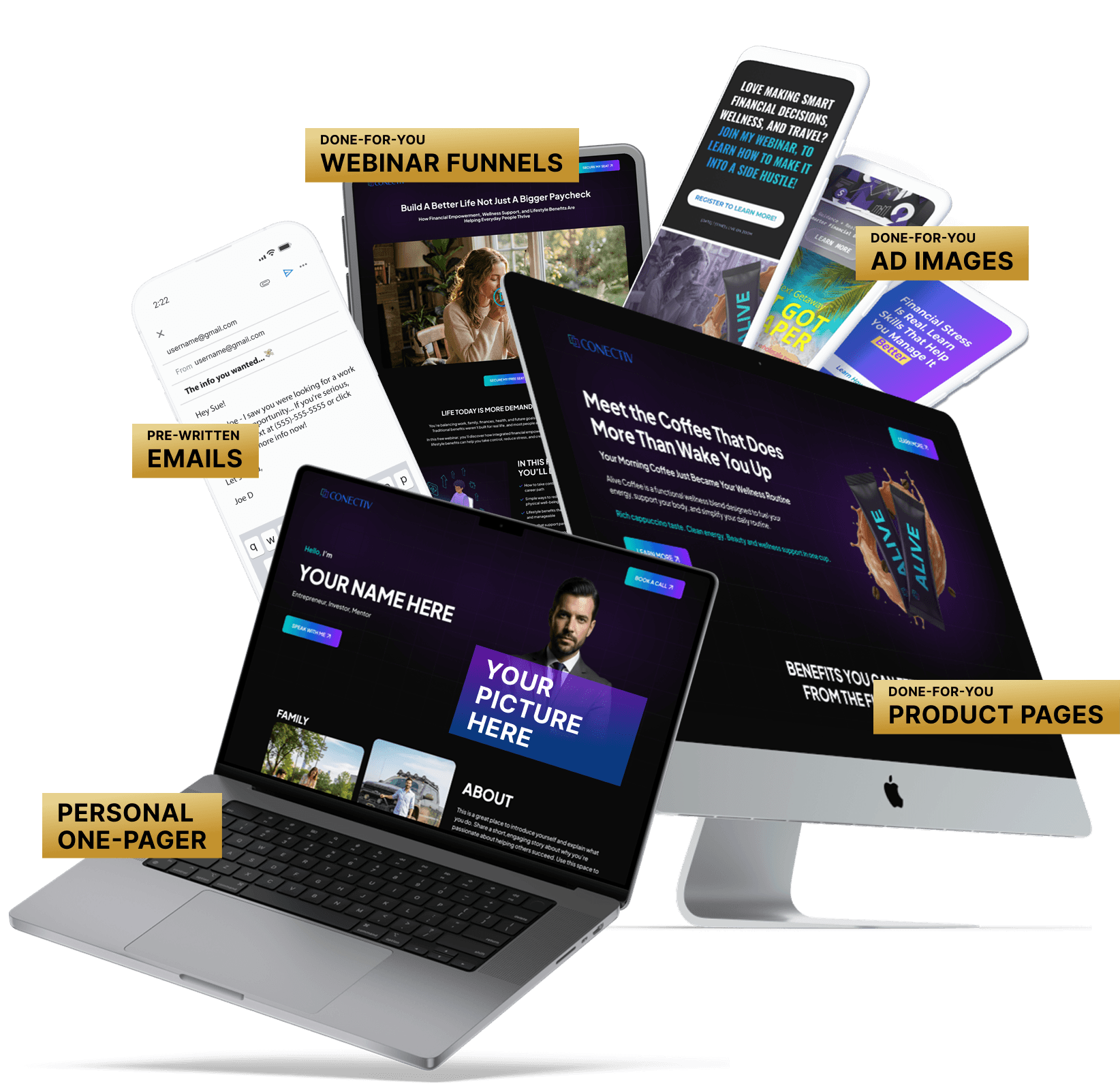 The all-in-one software every CONECTIV Rep needs to grow their business online - complete with ready-to-go funnels, automated marketing, and proven assets, all backed by step-by-step guidance.