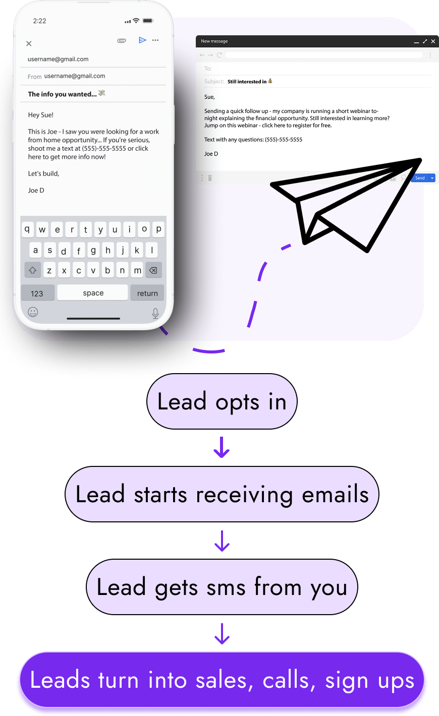When leads opt in to your opportunity focused pages, pre-written emails (that you can customize) will go be delivered to their inbox from YOUR custom email domain, encouraging them to learn more and sign up as a rep in YOUR organization!